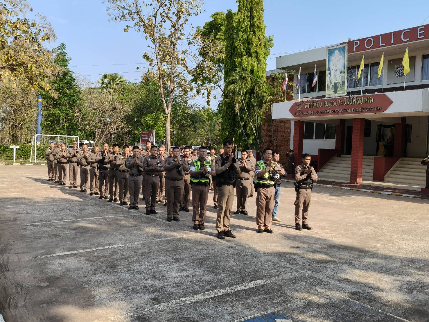 9 มี.ค.69 เวลา 08.00 น. พ.ต.อ.ศิริมงคล บุญหนุน ผกก.สภ.ประจักษ์ศิลปาคม พ.ต.ท.วีระพล มูลบัวภา รอง ผกก.สส.สภ.ประจักษ์ศิลปาคม พ.ต.ท.สุรบดินทร์ วงค์รินทอง รอง ผกก.ป.สภ.ประจักษ์ศิลปาคม พร้อมข้าราชการตำรวจในสังกัดร่วม กิจกรรมเข้าแถวเคารพชาติ สวดมนต์ ไหว้พระ กิจกรรมสำนึกในสถาบัน ชี้แจงข้อราชการ ณ ลานหน้า สภ.ประจักษ์ศิลปาคม